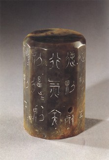 sur lequel sont gravés des idéogrammes.